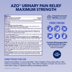 Viên uống AZO Urinary Pain Relief Maximum Strength được chỉ định để làm giảm các triệu chứng đau, rát khi tiểu, tiểu buốt, tiểu gấp, tiểu liên tục.