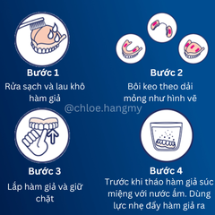 - Vệ sinh sạch sẽ hàm và để hàm khô hoàn toàn trước khi bôi keo dán hàm