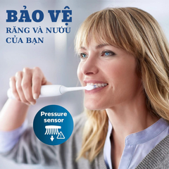 Bàn chải đánh răng ProtectiveClean 5100 cải thiện sức khỏe nướu răng của bạn tốt hơn tới 100% so với bàn chải đánh răng bằng tay Bàn chải có cảm biến áp suất giúp bảo vệ răng và nướu khỏi áp lực chải quá mức. Công nghệ BrushSync của chúng tôi theo dõi thời gian bạn sử dụng đầu bàn chải Optimal Gum Care và mức độ chải mạnh của bạn và sẽ phát ra tiếng bíp để thông báo cho bạn khi nào cần thay đầu bàn chải.