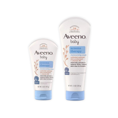 Kem dưỡng ẩm Aveeno Baby Eczema Therapy giúp làm dịu da khô, ngứa, kích ứng do eczema. Được phát triển với các bác sĩ da liễu hàng đầu, loại kem trị eczema cho trẻ sơ sinh không gây dị ứng này sử dụng sức mạnh làm dịu của yến mạch dạng keo tự nhiên để giúp tăng cường hàng rào độ ẩm của da nhằm ngăn ngừa và bảo vệ da khỏi tình trạng khô.