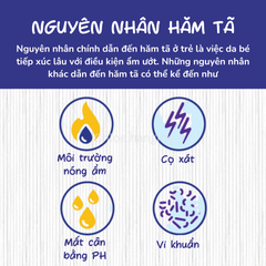 Công dụng chính: là tạo lớp màng bảo vệ, giúp làm dịu các vết ngứa rát, ban đỏ xảy ra do bé mặc tã trong thời gian dài.