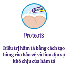 Kem hăm Desitin đến từ thương hiệu chăm sóc bé nổi tiếng của Mỹ - Johnson & Johnson, được sản xuất tại Canada. Kem có công dụng chính là tạo lớp màng bảo vệ, giúp làm dịu các vết ngứa rát, ban đỏ xảy ra do bé mặc tã trong thời gian dài.
