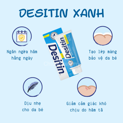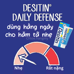 Kem hăm Desitin vỏ màu xanh (Desitin Daily Defense): Đây là loại có thể sử dụng hằng ngày với 13% ZnO giúp lành và ngăn hăm tã xuất hiện, bảo vệ làn da nứt nẻ do phát ban tã và giúp khóa ẩm tốt cho làn da bé thêm mượt mà, khỏe mạnh