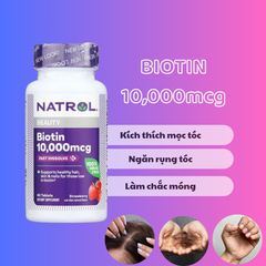 Sản phẩm Natrol Biotin là viên uống mọc tóc đến từ thương hiệu Natrol có nguồn gốc tại Mỹ. Ra ra mắt thị trường đã hơn 40 năm với các sản phẩm phổ biến. Viên uống mọc tóc Natural Biotin với các thành phần từ tự nhiên giúp kích thích mọc tóc và góp phần nuôi dưỡng mái tóc chắc khỏe, ngăn chặn các hư tổn không mong muốn như: khô, sơ. Đem đến cho bạn một mái tóc khỏe đẹp hơn từng ngày.